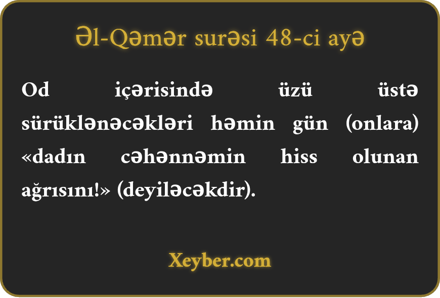 Od içərisində üzü üstə sürüklənəcəkləri həmin gün (onlara) «dadın cəhənnəmin hiss olunan ağrısını!» (deyiləcəkdir).