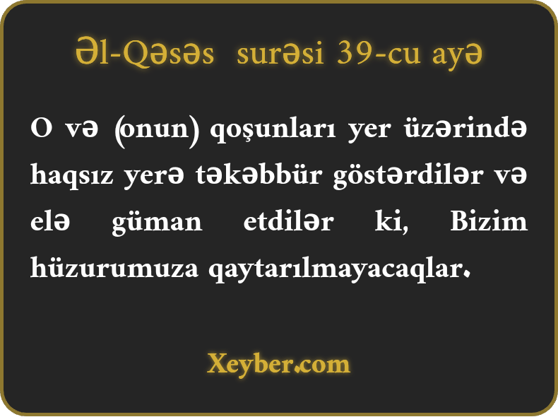 Əl-Qəsəs surəsi - 39-cu Ayə