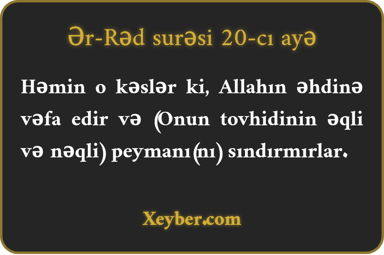 "(Düşüncə sahibləri) ilahi əhdə vəfa qılan və əhdi pozmayan kəslərdir.”