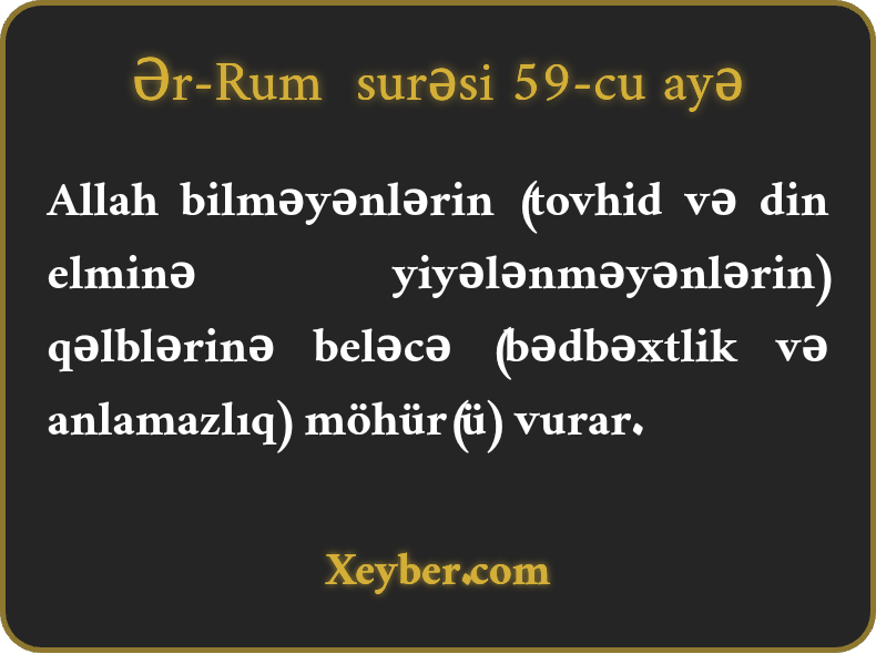 Allah bilməyənlərin (tovhid və din elminə yiyələnməyənlərin) qəlblərinə beləcə (bədbəxtlik və anlamazlıq) möhür(ü) vurar.