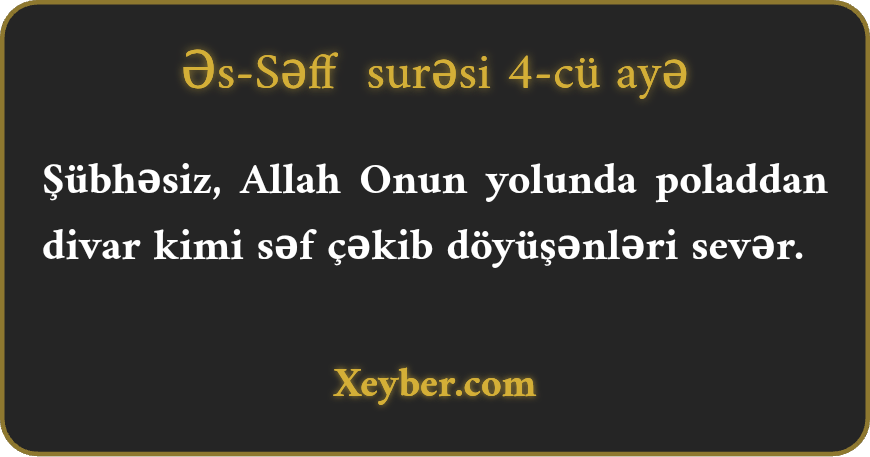 Şübhəsiz, Allah Onun yolunda poladdan divar kimi səf çəkib döyüşənləri sevər.