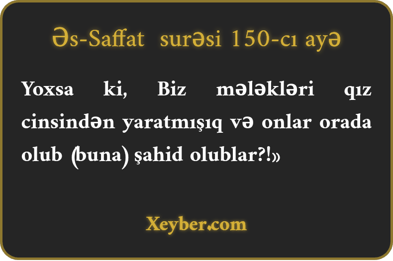 Yoxsa ki, Biz mələkləri qız cinsindən yaratmışıq və onlar orada olub (buna) şahid olublar?!»