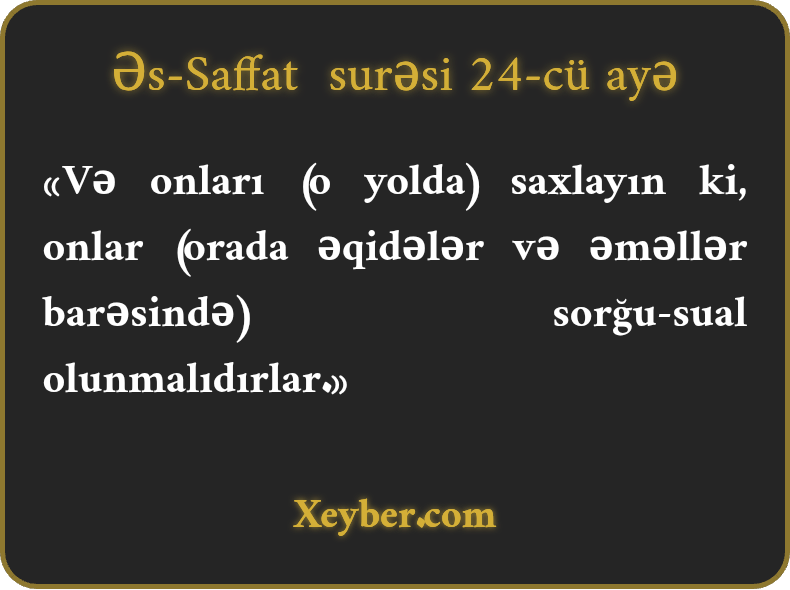 «Və onları (o yolda) saxlayın ki, onlar (orada əqidələr və əməllər barəsində) sorğu-sual olunmalıdırlar.»