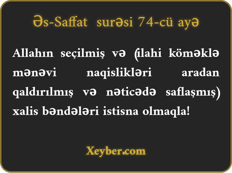 Allahın seçilmiş və (ilahi köməklə mənəvi naqislikləri aradan qaldırılmış və nəticədə saflaşmış) xalis bəndələri istisna olmaqla!