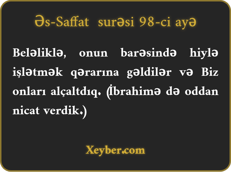 Beləliklə, onun barəsində hiylə işlətmək qərarına gəldilər və Biz onları alçaltdıq. (İbrahimə də oddan nicat verdik.)