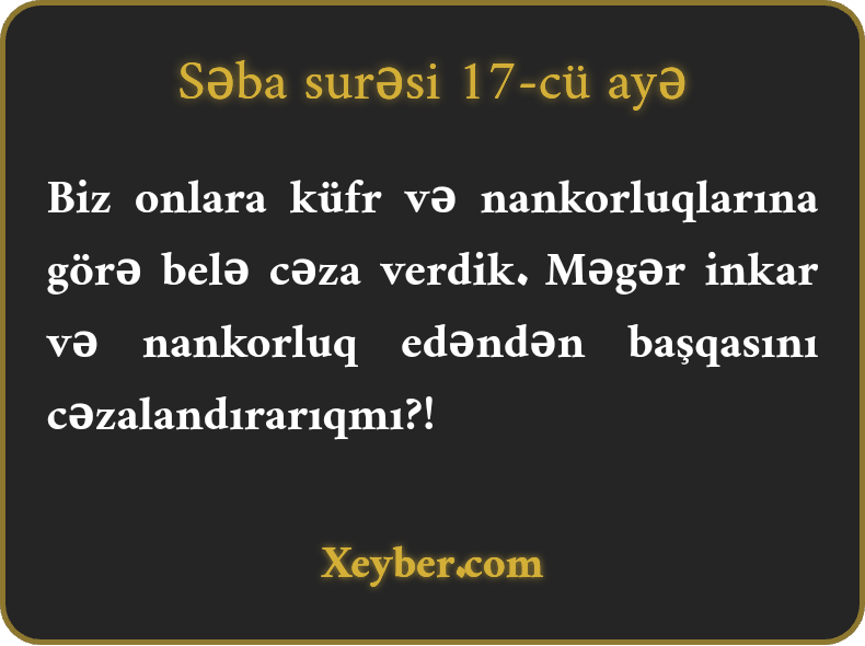 Biz onlara küfr və nankorluqlarına görə belə cəza verdik. Məgər inkar və nankorluq edəndən başqasını cəzalandırarıqmı?!