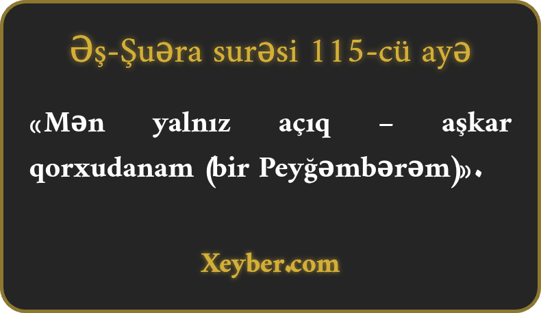 «Mən yalnız açıq – aşkar qorxudanam (bir Peyğəmbərəm)».