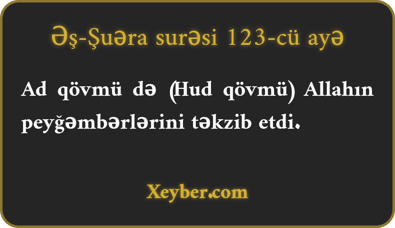 Ad qövmü də (Hud qövmü) Allahın peyğəmbərlərini təkzib etdi.