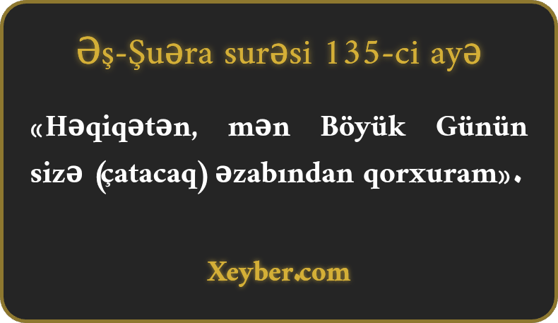 «Həqiqətən, mən Böyük Günün sizə (çatacaq) əzabından qorxuram».