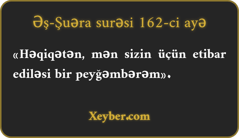 «Həqiqətən, mən sizin üçün etibar ediləsi bir peyğəmbərəm».