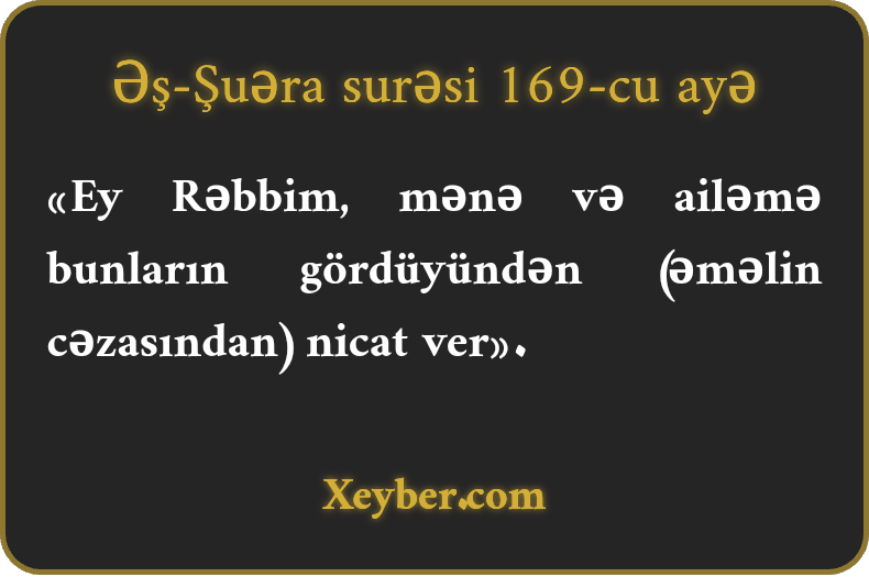 «Ey Rəbbim, mənə və ailəmə bunların gördüyündən (əməlin cəzasından) nicat ver».
