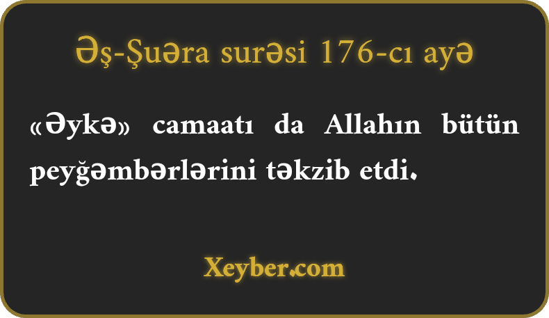 «Əykə» camaatı da Allahın bütün peyğəmbərlərini təkzib etdi.