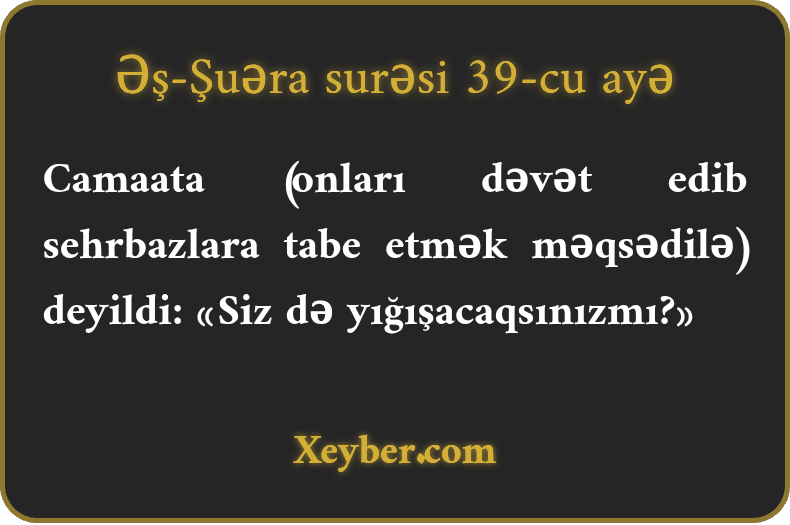 Camaata (onları dəvət edib sehrbazlara tabe etmək məqsədilə) deyildi: «Siz də yığışacaqsınızmı?»