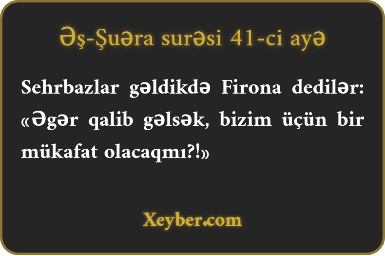 Sehrbazlar gəldikdə Firona dedilər: «Əgər qalib gəlsək, bizim üçün bir mükafat olacaqmı?!»