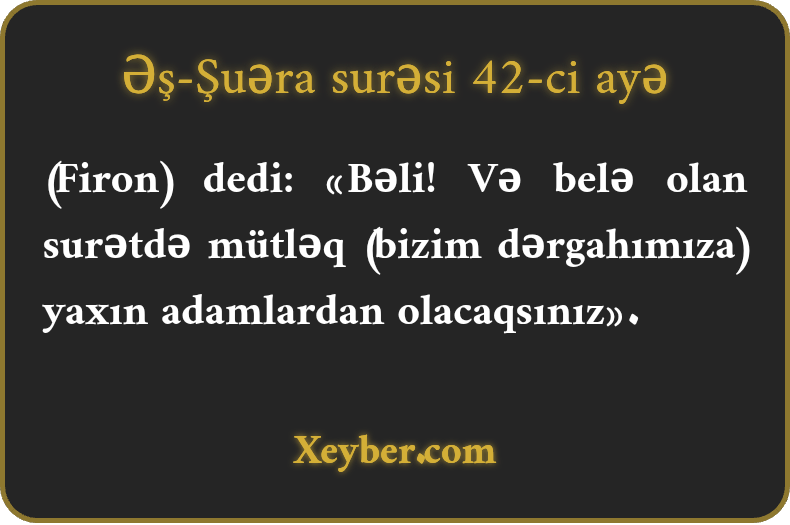 (Firon) dedi: «Bəli! Və belə olan surətdə mütləq (bizim dərgahımıza) yaxın adamlardan olacaqsınız».