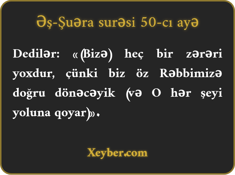 Dedilər: «(Bizə) heç bir zərəri yoxdur, çünki biz öz Rəbbimizə doğru dönəcəyik (və O hər şeyi yoluna qoyar)».