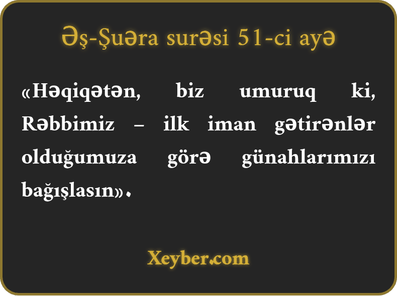 «Həqiqətən, biz umuruq ki, Rəbbimiz – ilk iman gətirənlər olduğumuza görə günahlarımızı bağışlasın».