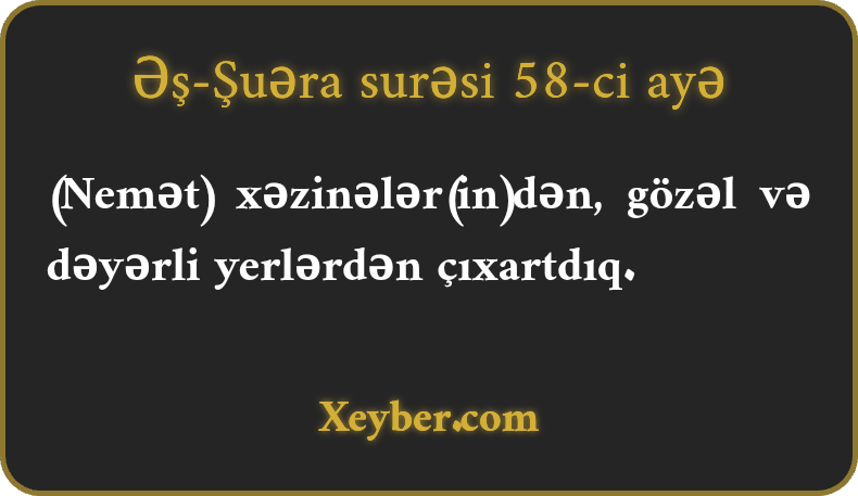 (Nemət) xəzinələr(in)dən, gözəl və dəyərli yerlərdən çıxartdıq.