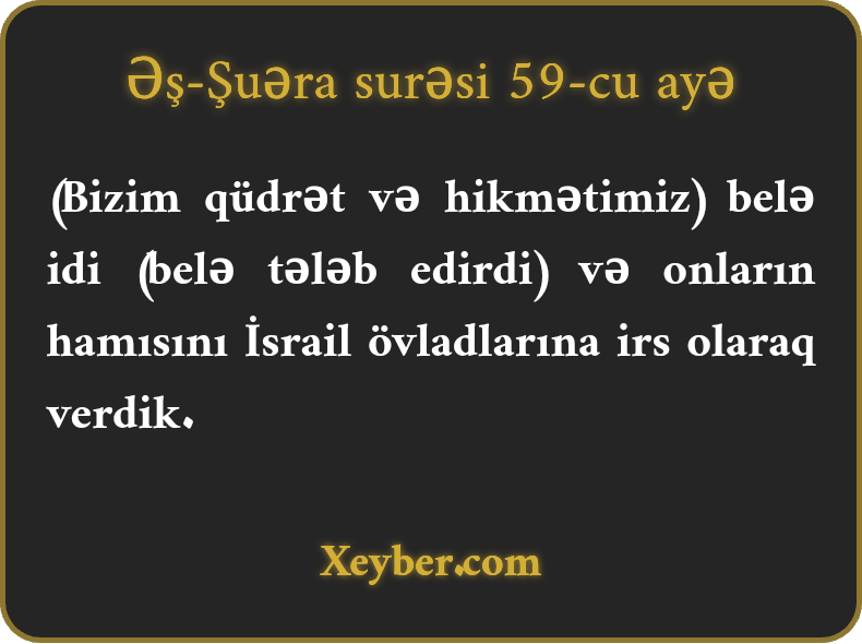 (Bizim qüdrət və hikmətimiz) belə idi (belə tələb edirdi) və onların hamısını İsrail övladlarına irs olaraq verdik.