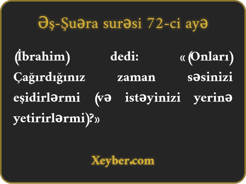 (İbrahim) dedi: «(Onları) Çağırdığınız zaman səsinizi eşidirlərmi (və istəyinizi yerinə yetirirlərmi)?»