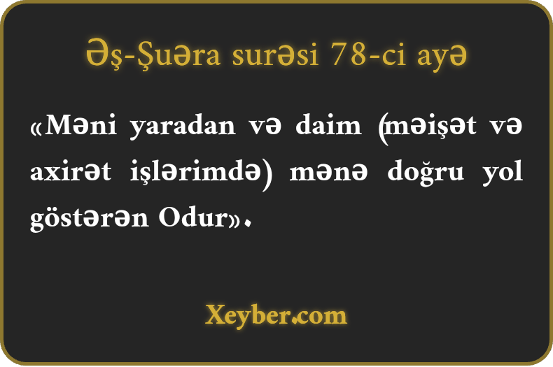 «Məni yaradan və daim (məişət və axirət işlərimdə) mənə doğru yol göstərən Odur».