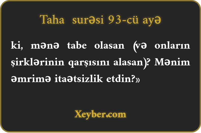 Taha surəsi 93-cü Ayəsinin Təfsirləri
