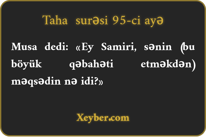 Musa dedi: «Ey Samiri, sənin (bu böyük qəbahəti etməkdən) məqsədin nə idi?»