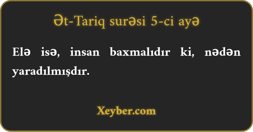 Elə isə, insan baxmalıdır ki, nədən yaradılmışdır.
