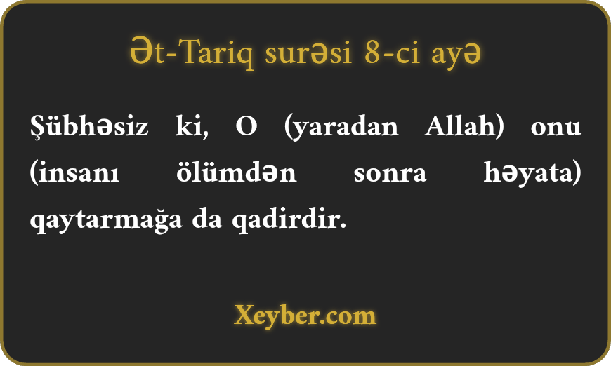 Şübhəsiz ki, O (yaradan Allah) onu (insanı ölümdən sonra həyata) qaytarmağa da qadirdir.