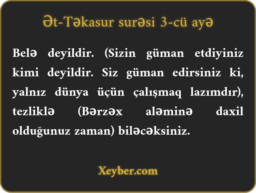 Ət-Təkasur surəsi - 3-cü Ayə