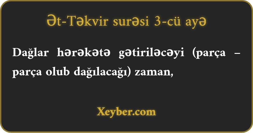 Dağlar hərəkətə gətiriləcəyi (parça – parça olub dağılacağı) zaman,