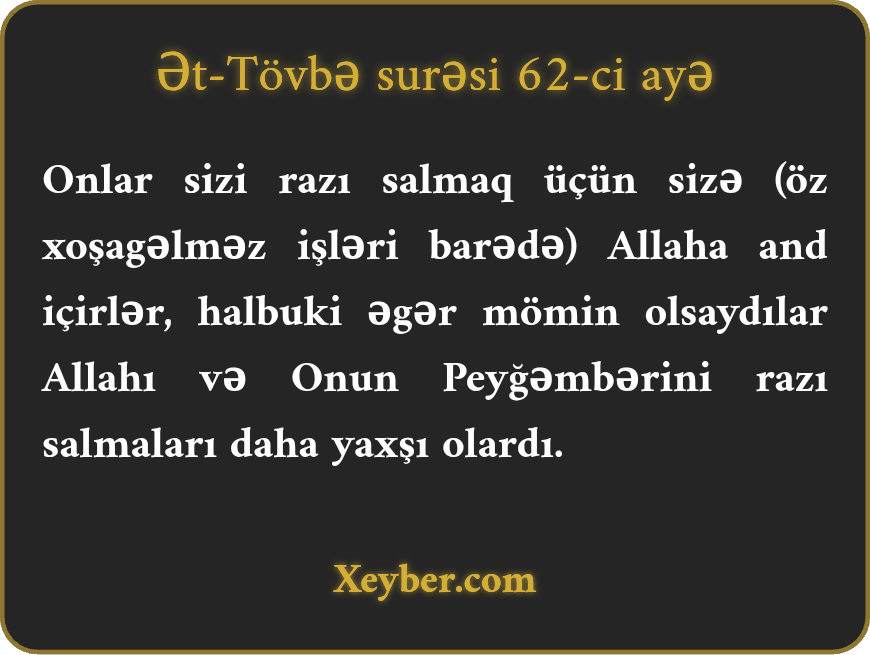 "(Münafiqlər) and içirlər ki, sizi razı sala bilsinlər. Halbuki iman gətirsəydilər, Allah və Onun rəsulunu razı salmaq daha yaxşı olardı.”