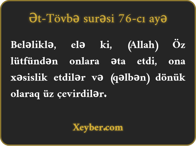 "Nəhayət, Allahla bağladıqları əhdin ardınca vədlərinə xilaf çıxdılar. Yalan danışdıqlarından (Allah) Onun görüşünə yetişənədək qəlblərində nifaq ruhu qərar verdi.”
