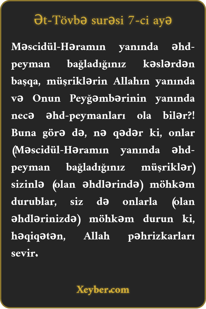 "Axı necə (onlarla peyman bağlamaq olar), bir halda ki, sizə qalib gəldikdə heç bir yaxınlıq və peymanı nəzərə almazlar, sizi öz yumşaq dilləri ilə razı salarlar, amma qəlbən qəbul etmirlər. Onların çoxu həddi aşanlardır.”