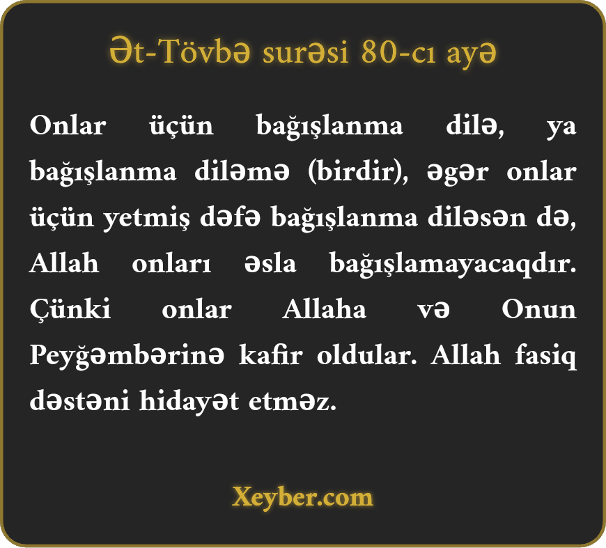 "Allah rəsulunun ziddinə olaraq döyüşdən boyun qaçıran, evdə oturmasından fərəhlənən, malı və canı ilə Allah yolu ilə cihaddan ikrah duyan, başqalarına "bu istidə (döyüş üçün) çölə çıxmayın” deyən kəslərə söylə ki, əgər bilərdilərsə, cəhənnəm odu daha yandırıcıdır.”