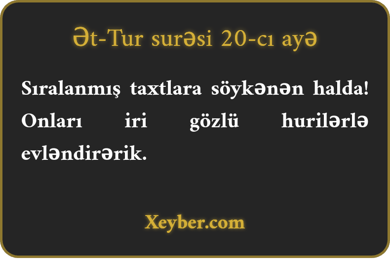 Sıralanmış taxtlara söykənən halda! Onları iri gözlü hurilərlə evləndirərik.