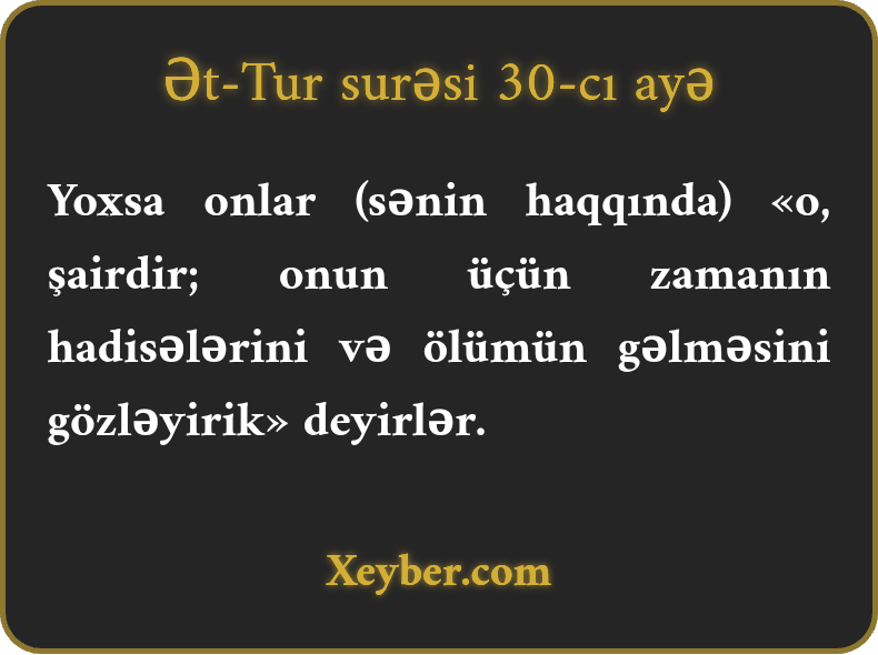 Yoxsa onlar (sənin haqqında) «o, şairdir; onun üçün zamanın hadisələrini və ölümün gəlməsini gözləyirik» deyirlər.