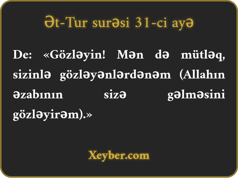 De: «Gözləyin! Mən də mütləq, sizinlə gözləyənlərdənəm (Allahın əzabının sizə gəlməsini gözləyirəm).»