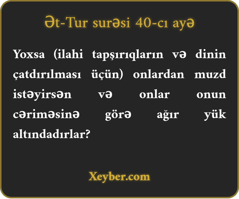 Yoxsa (ilahi tapşırıqların və dinin çatdırılması üçün) onlardan muzd istəyirsən və onlar onun cəriməsinə görə ağır yük altındadırlar?