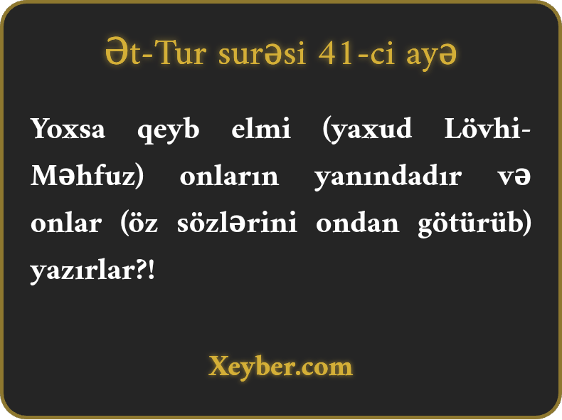 Yoxsa qeyb elmi (yaxud Lövhi-Məhfuz) onların yanındadır və onlar (öz sözlərini ondan götürüb) yazırlar?!