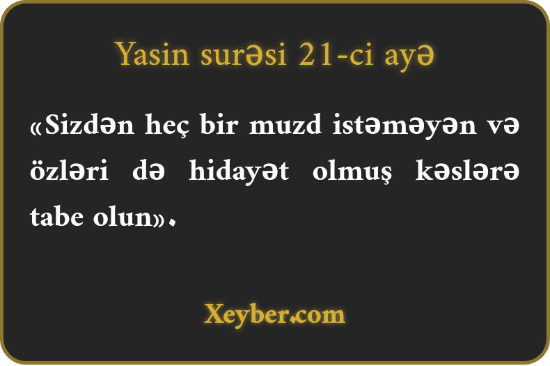 «Sizdən heç bir muzd istəməyən və özləri də hidayət olmuş kəslərə tabe olun».