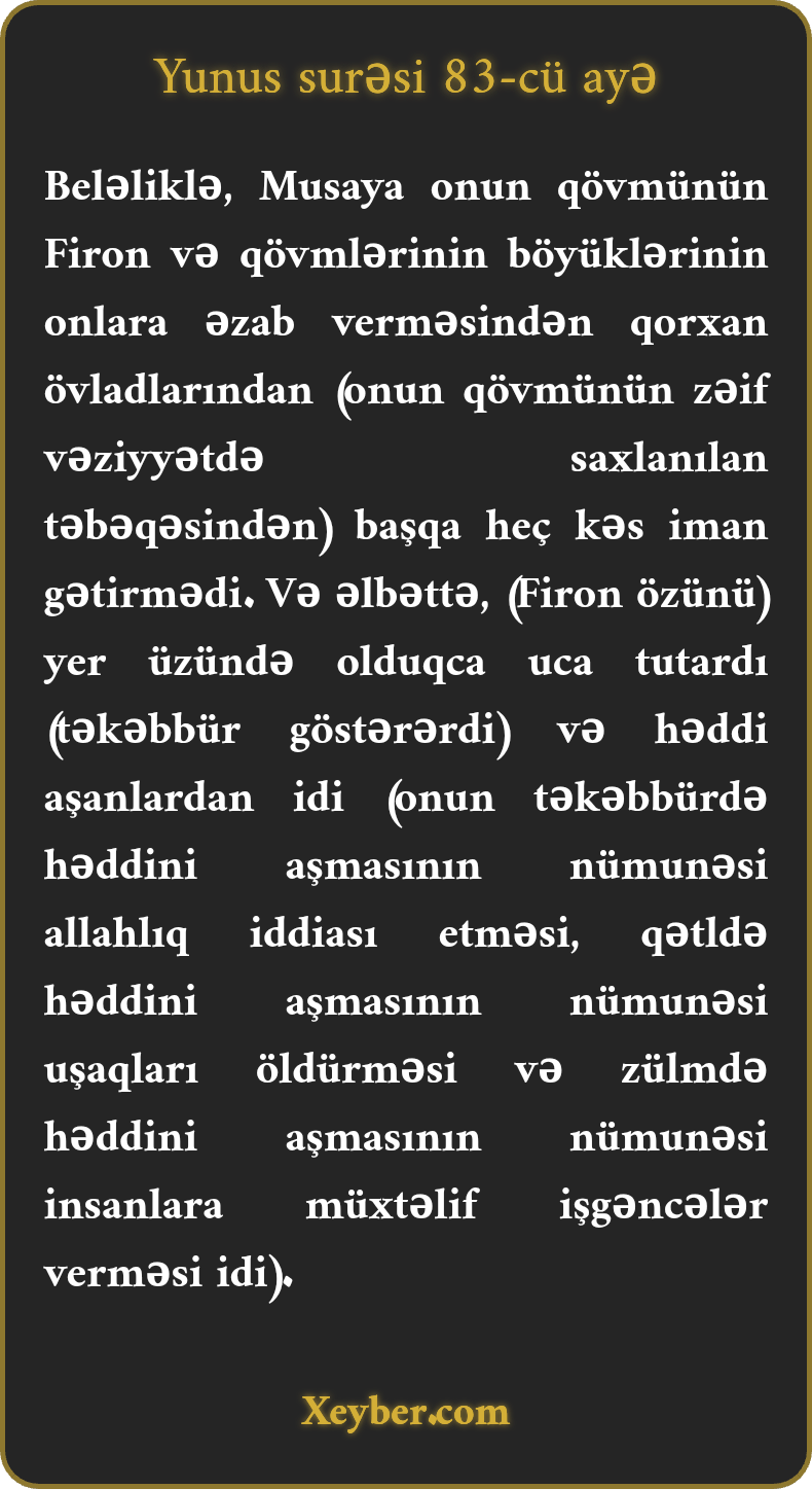 NUR TƏFSİRİ: Yunus surəsi / ayə 83