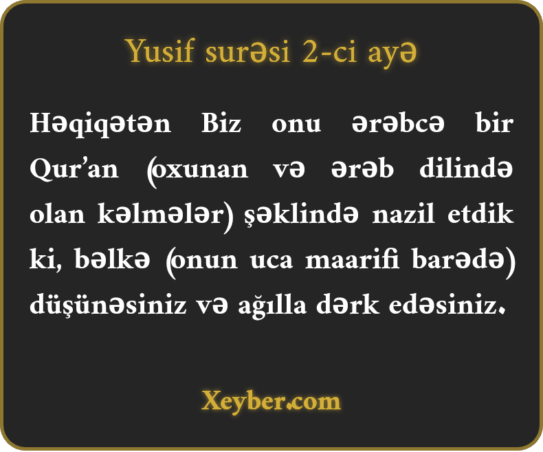 "Həqiqətən, Biz onu ərəbcə Quran olaraq nazil etdik. Ola bilsin ki, düşünəsiniz.”