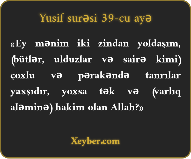 "Ey mənim iki zindan yoldaşım! Müxtəlif tanrılar yaxşıdır, yoxsa ixtiyar sahibi olan bir Allah?”