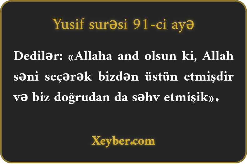 "(Qardaşlar) dedilər: "And olsun Allaha, Allah səni bizdən üstün edib, həqiqətən, biz xətakar olmuşuq.”