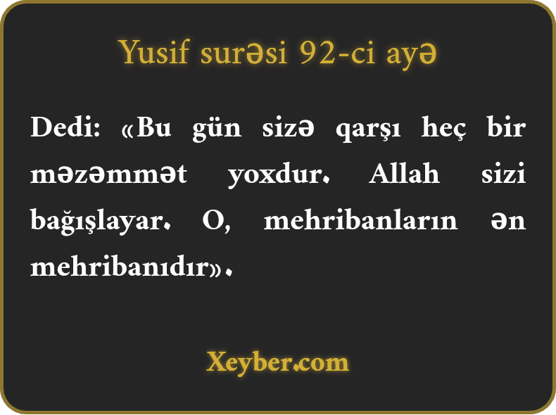 "(Yusif ) dedi: Bu gün sizə heç bir məzəmmət yoxdur. Allah sizi bağışlayar. O, mehribanların ən mehribanıdır.”