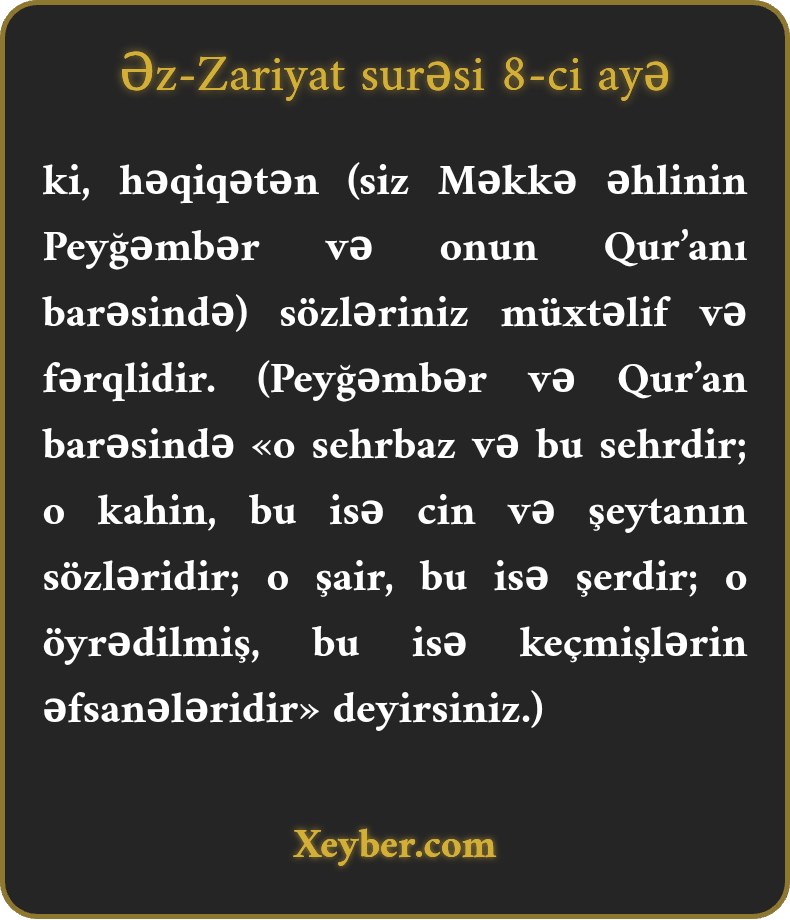 Əz-Zariyat surəsi 8-ci Ayəsinin Təfsirləri
