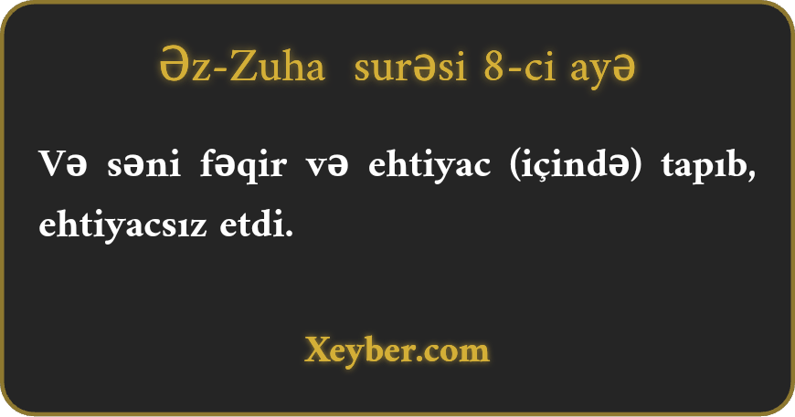 Və səni fəqir və ehtiyac (içində) tapıb, ehtiyacsız etdi.
