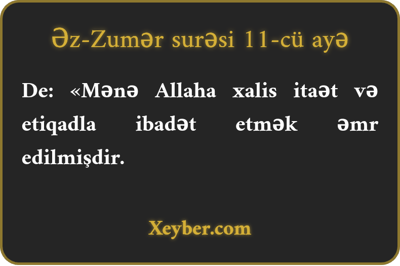 De: «Mənə Allaha xalis itaət və etiqadla ibadət etmək əmr edilmişdir.