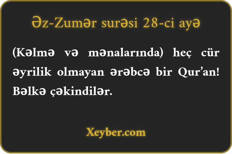 (Kəlmə və mənalarında) heç cür əyrilik olmayan ərəbcə bir Qur’an! Bəlkə çəkindilər.
